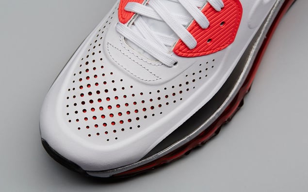 Merely a remake of the classic Nike Air Max 90, this new-age runner mixes elements of past decades with updated materials and OG color blocking for a fresh new appeal. Complete with Hyperfuse materials and a bottom 360 Air Max midsole, these kicks don an official white, infrared, and black colorway.
