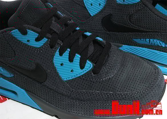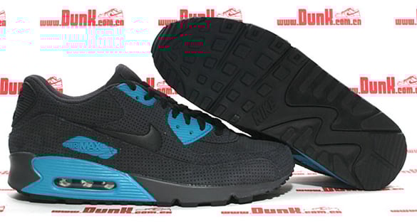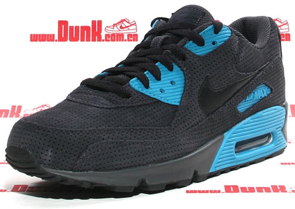 Just a few days ago a Nike Air Max 90 appeared on Size? and is reportedly a Europe exclusive release, here’s a look at an almost identical model which might released worldwide. This version is composed of a similar make-up that includes premium suede and perforated nubuck on the upper. However, the Air Max 90 gets a few minor tweaks by consisting of a black swoosh and heel with neon turquoise accents. Though there is no word on whether these will hit stateside or not, were hoping they won’t be available at European retailers only. Via Dunk.com.cn.