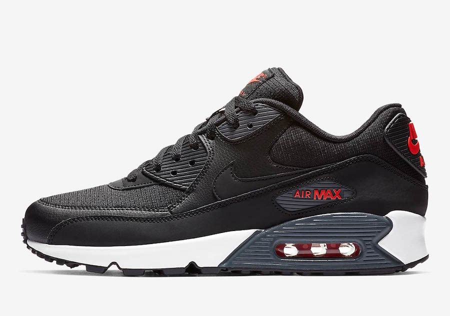 This Nike Air Max 90 comes in a clean Black and Habanero Red color combination. Looking closer if comes highlighted with Black leather and mesh across the upper while Habanero Red lands on the branded areas, Air Max unit and insole. Other details includes White on the midsole, Grey accents and a Black rubber outsole.