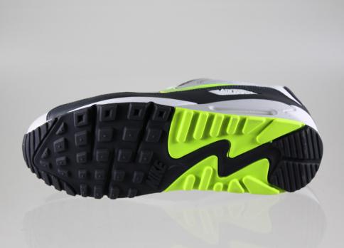 Sporting a black, white, and grey upper, this Air Max 90 consists of classic color blocking and receives hits of volt on the Swoosh, tongue branding, lining, and outsole.