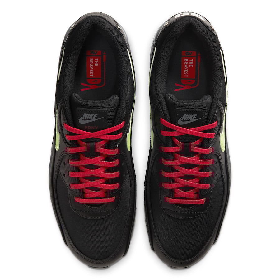 Celebrating the firefighters of New York City, this take on the Air Max 90 incorporates a reflective Swoosh inspired by a key part of their uniform. The custom heel emblem with screwed down hardware and “90” are a focal point and a nod to old firefighter helmets.