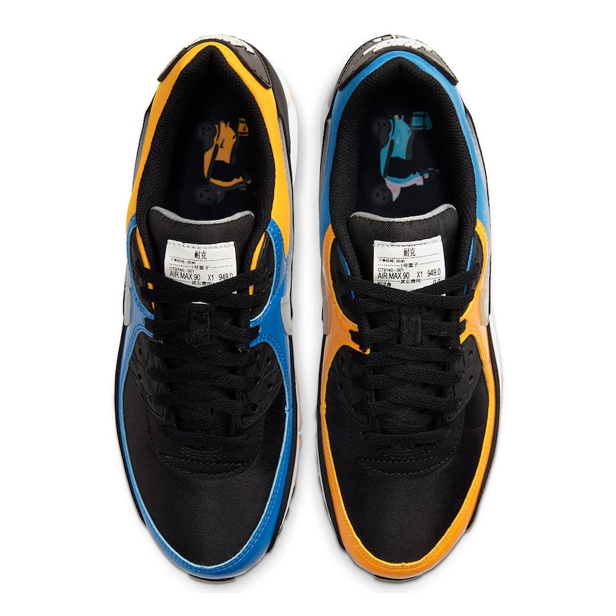 The Air Max 90’s Tokyo edition honors construction workers. The special tongue is a nod to street signs around construction sites, while the printed sockliner’s image overlooks Japan’s cityscape.