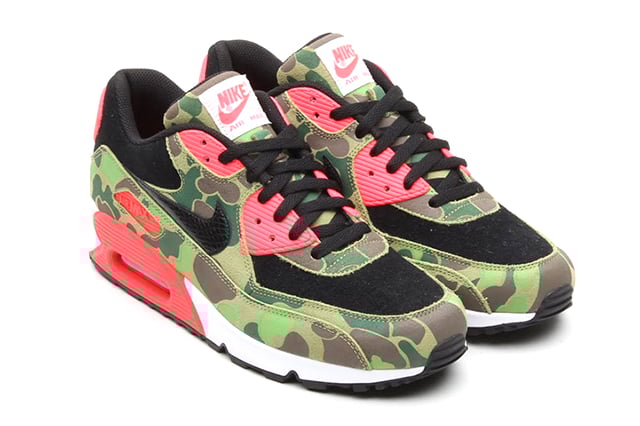 If you’ve been itching to snag you a pair of the Japan exclusive Nike Air Max 90 Premium Atmos Camo Pack sneakers, then Opportunity is knocking at your door right now! For a brief four days (beginning Wednesday, November 20th), the Boston based boutique, Bodega, will be releasing raffle tickets to potential buyers. At the end of the four days (Saturday November 23rd), Bodega will select it’s winners to contact, further inviting them in to purchase the infrared camouflage trainers. These Japan Nikeย exclusiveย sneakers are top notch, and will only be available in the US this coming weekend! More raffling information can be found at theย Bodega site. More pictures below!