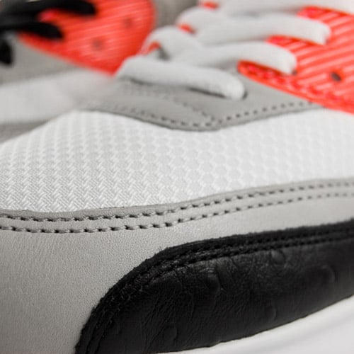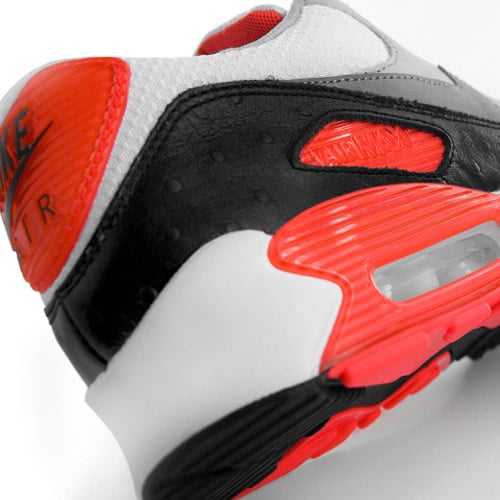 With the 2008 version of the Infrared Nike Air Max 90 being one of the most sought after re-releases, this premium version is making a splash by adding a touch of class to an already classic design. New additions, include a dark ostrich skin mudguard that replaces the traditional style and higher quality materials seen in a few of the close-up shots. Of course with the premium label, it will yield a higher price tag. Look for these to drop on August 8th at Overkill.