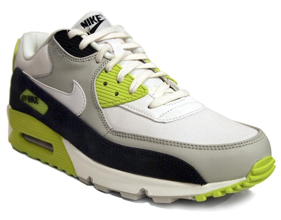Set in a strata grey and white color scheme, these runners display black accents along with hits cyber throughout for a bold finish. Now, if you’re a true Nike Air Max 90 fan, you’ll see that this release serves as a follow up to last year’s “Volt” variation. Very similar, yet very different.
