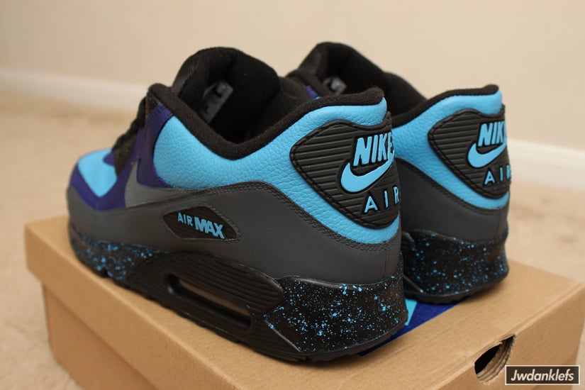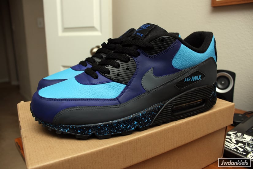 When graffiti artist Stash x Nike released a line of limited edition sneakers in the form of Air Max 95s and Air Max Classic BWs in a Navy/Sport Royal-Harbor Blue colorway, it got some people thinking, “What if OTHER Air Max’s got the special ‘Stash’ treatment?”. Well, jwdanklefs of Dank Customs decided not to wait and brought that thought into reality by creating a “Stash”-esque colorway for the Nike Air Max 90. This 90 has all the Stash design cues with black speckled midsole, Navy and black panels and Harbor Blue leather uppers to re-create the same color blocking as the Stash Air Max 95. These are probably 1 of 1, but you can check out his blog for more of his awesome work.
