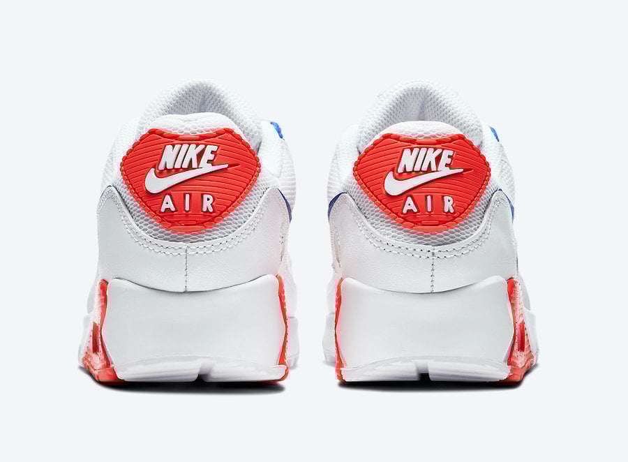 This Nike Air Max 90 comes highlighted with White mesh and leather throughout while White is also seen on most of the midsole and rubber outsole. Following we have both Blue and Solar Red detailing which brings the whole OG โUltramarineโ theme together.