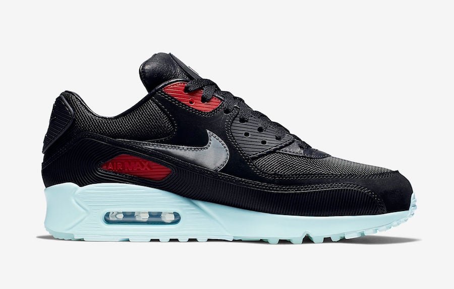 This Nike Air Max 90 comes dressed in a Black, Cool Grey, Teal Tint and University Red color combination. Constructed with Black mesh and nubuck on the upper while textile lands on the overlays. In addition we have Red detailing throughout while Teal covers the midsole and rubber outsole. Completing the look is a Nike vinyl logo on the tongue.