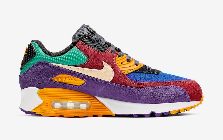 Featuring a University Red, Pale Vanilla and Hyper Grape color combination. Looking closer this Nike Air Max 90 comes with premium suede across the upper while the original colors used from the Viotech Dunk is seen throughout the upper. Other details includes a leather tongue label, White midsole and mismatch rubber outsole.