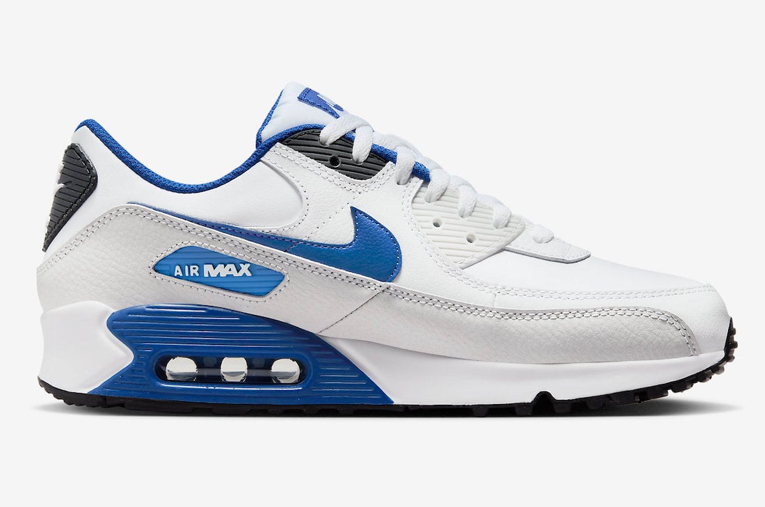 This Nike Air Max 90 wonโt have official ties to Fragment, while the shoes come constructed with a mixture of mesh and leather. Utilizing White on the base, Off-White across the mudguard, and Black on the eyestays and heels. Royal Blue fills in the Swoosh logos, tongue labels, liner, and Air cassettes. Other details include a White midsole and a Black rubber outsole.
