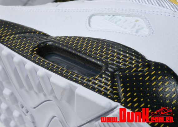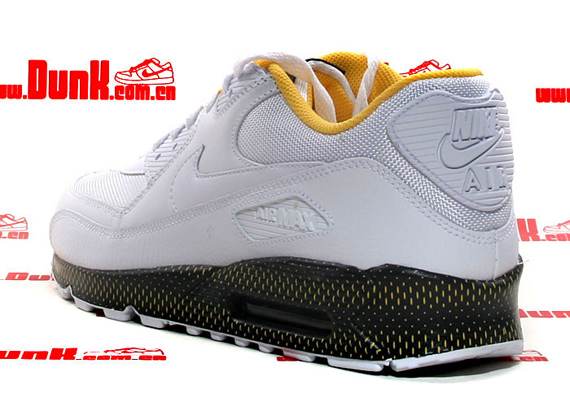 Nike is appreciating the old school with its latest release of the Nike Air Max 90. This AM90 features a white/white-varsity maize colorway, a nice simple colorway which sports a full white leather and mesh upper. But, that’s not all; the black midsole rocks a varsity maize waffle iron design to pay homage to Bill Bowerman’s ingenious waffle iron idea, which he utilized for the Nike Waffle Racer and Nike Waffle Trainer. If you look further into the varsity maize inner lining, you will find the waffle iron man on the black insole. This AM90 is definitely a treat for thoseย OG collectors, so get your own pair today.