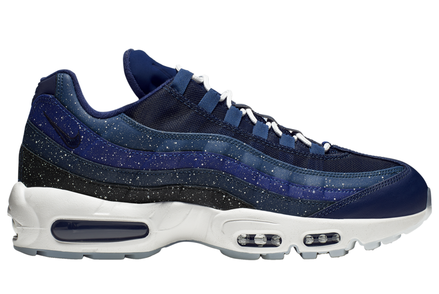 Representing Day and Night, the lateral side comes in a darker theme with shades of Blue for the night sky while speckled detailing represents the stars. The medial side will have lighter shades of Blue and White for during the day. Some of the other details includes mismatched eyestays, White midsole, Dark Blue within the Air Max unit and a milky translucent outsole.