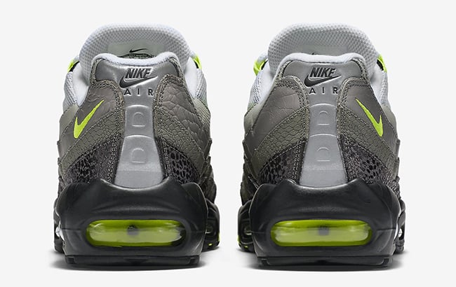 The Air Max 95 OG Neon just launched over the weekend but Nike has more plans in the works to celebrate the 20th anniversary. Using a similar theme is the Nike Air Max 95 Neon Safari.