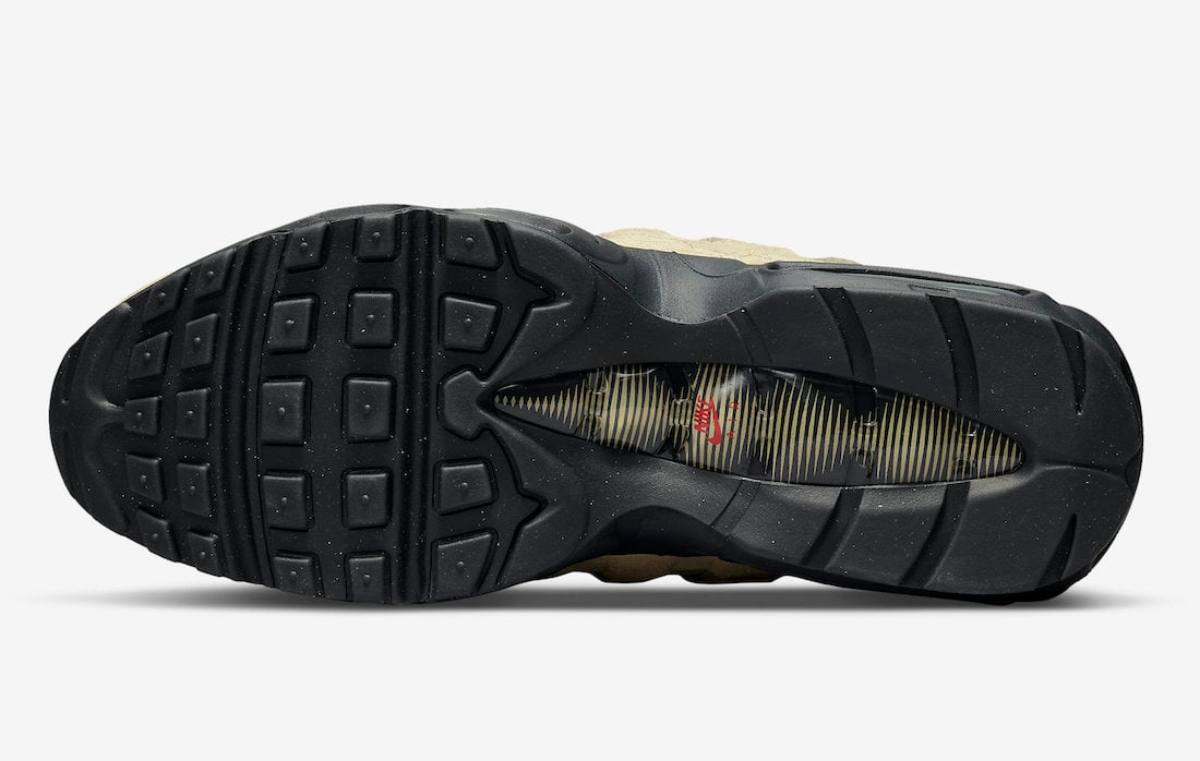 Featuring an Off Noir, University Red, Rattan, and Limestone color combination. This Nike Air Max 95 combines mesh, leather, and suede while debossed topographic print appears on the panels which represent mountains. Adding some pop, we have Red accents throughout while a Black midsole and matching rubber outsole finish the look.