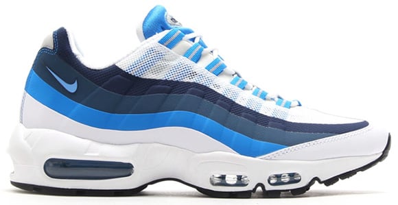 Nike accounts will release the Air Max 95 No Sew White/University Blue March 21st 2014. Available now at atmos.