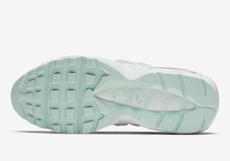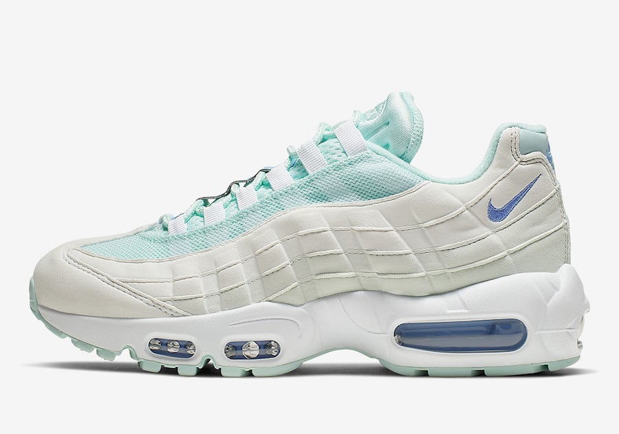 This Nike Air Max 95 comes dressed in a Teal Tint, Royal Pulse and Summit White color combination. Featuring White across the panels and toe box while Teal lands on the mesh, laces and tongue. Following is Blue on the overlay, Swoosh logo and within the Air Max unit. Other details includes White on the midsole and Teal Tint on the rubber outsole.