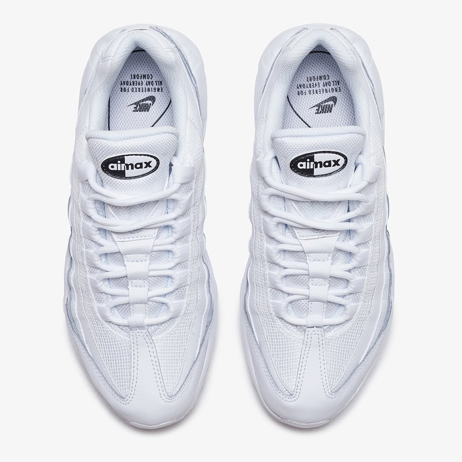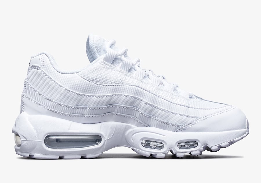 This Nike Air Max 95 utilizes White across the upper while constructed with leather and mesh. In addition we have White on the midsole and rubber outsole. Completing the look we have Black on the Swoosh, Air Max logo on the tongue, branding on the insoles, Nike Air on the heel and hinted on the outsole.