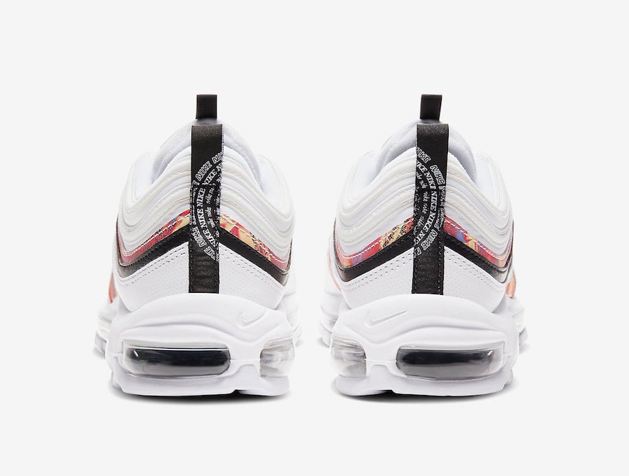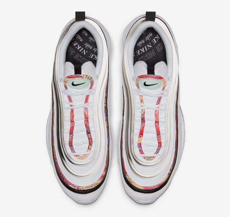 Looking closer each pair comes dressed in shades of Yellow, Orange, Red and Blue while a new graphic is seen on the Swoosh and heel of the Air Force 1 High, panels on the Air Force 1 Low while the Air max 97 has it on the tongue, striped around and on the panels. Both White and Black is used while โNIKEโ is seen on the tongue, sides, insoles and heel tabs to complete the look.