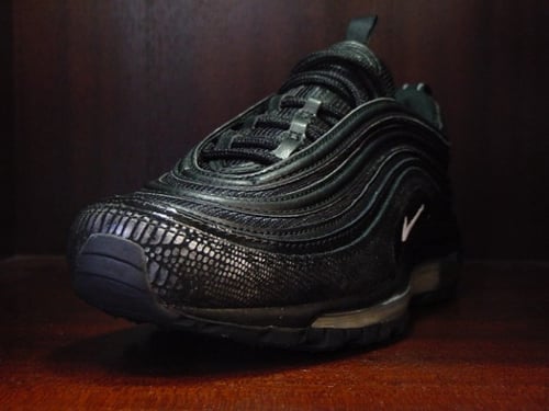 Only a week or so after the early release of the Snakeskin Air Max 95, the animal print has been spotted on another popular Air Max model. Unlike the gradient upper of the AM95, this new Air Max 97 model utilizes a predominantly black snakeskin base, with light hits of white on the midsole and Swoosh. No word on whether or not the shoes will be releasing stateside, but they can be found now from international retailers like Titolo.