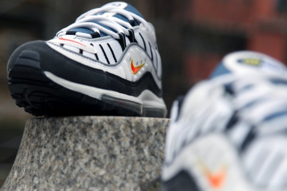 Now available at Foot Patrol is this White, Total Orange, and Metallic Silver Nike Air Max 98. Returning to the sneaker scene just a week before Air Max day, the classic silhouette is back in full effect. Looking just as good as it did when it first released back in 1998, this colorway kicks the models retro run off in a major way. Continue reading after the jump to check out some up close and personal shots at this latest drop and make sure you head over to Foot Patrol right now to place your orders. Be sure to keep checking with SneakerFiles to find out when these joints will arrive here in the states.