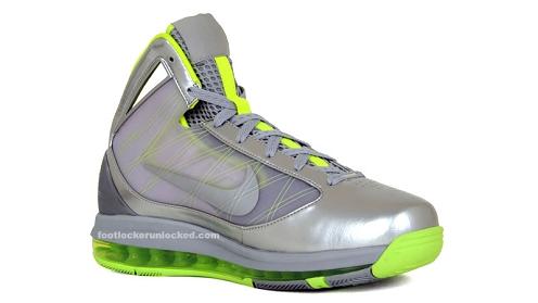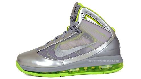 Evidently, the Nike Hyperize silhouette has fallen under some scrutiny for its performance- as evidenced by Arnie Kander’s (strength and conditioning coach of the Detroit Pistons) ban on that basketball sneaker. However, maybe the Nike Air Max Hyperize is better suited for foot support, specifically in action on the hardwood. Last week we showed you two teaser images of a metallic silver/volt Nike Air Max Hyperize that, to the excitement of many, sports the 360-degree Air Max sole unit that sneakers like the Nike Air Max Lebron VII do. Now, you can check out a full preview of this sneaker silhouette and colorway after the jump. How do you expect the Air Max sole unit to impact the overall performance of this reworked Nike basketball shoe?