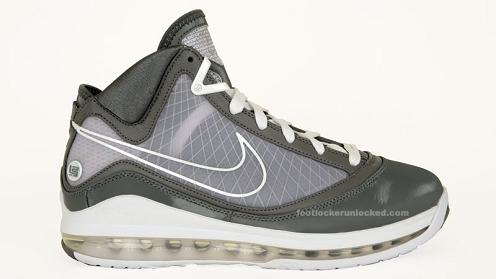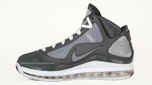 Earlier we brought you a better look at a Nike Air Max Lebron VII that sports a cool grey base with red accents throughout. Cool grey seems to not only look good on this Nike silhouette, but also pass the test in many sneakerheads’ eyes. To that extent, we’d like to inform you now that the Nike Air Max Lebron VII “Cool Grey” pictured here (without color accents) shall be releasing from select Nike retailers including Foot Locker locations nationwide in March of 2010. With a mix of shiny and textured materials along the upper, as you move down the shoe you get to a transparent mid-panel equipped with the Flywire material and then a white midsole atop the 360-degree air max unit. So is this pair the best Nike Air Max Lebron VII out of the four pairs that include cool grey?