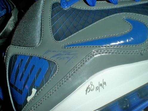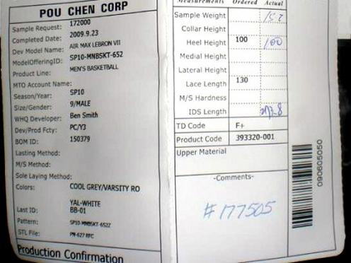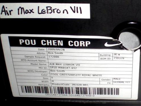 Two days after Christmas 2009 we showed you a collection of three Air Max Lebron VIIs that sport the same cool grey coloring, but each with a different accent color- red, orange, and blue. While we haven’t seen many clear pictures of the blue pair, we now have come across a production sample with notes on part of the shoe and paperwork that speak to the production process. So take a closer look at the cool grey/varsity royal-white Nike Air Max Lebron VII after the jump, and stay tuned for more release information regarding this sneaker- which as of now will reportedly be an Eastbay exclusive.