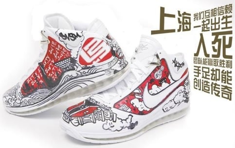 Lebron and Nike take their tour through to Beijing first, where Lebron won his first Olympic gold medal last summer and which inspired the first Lebron VII design pictured here. Then on the 26th they visit Shenyang, and Shanghai on the 28th- the inspiration for the last two shoes, respectively, that commemorate China’s cities. Check out all three designs here after the jump, and let us keep you updated on any further developments.