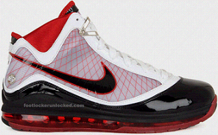 It has been more than two months since we began seeing concrete shots of what would ultimately be the final design of Lebron James’ Nike Air Max Lebron VII. But the time is here- ALMOST. On Thursday October 29, 2009, the first (white/black/red colorway of the Lebron VII’s will release at House of Hoops locations, FootLocker stores, and online at footlocker.com. You’ve heard and now know almost all there is to know regarding this magnificent sneaker designed by Senior Footwear Designer Jason Petrie- from the flywire and lighter design to the cushioned midsole. Now, get ready to be a part of history when what is widely being considered the best Lebron signature series Nike design ever FINALLY drops. Where will YOU be?