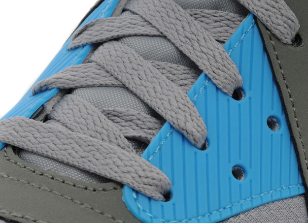 Making an appearance in a new base grey and dark obsidian colorway, these classic runners include a black leather mudguard, mesh underlays, hits of university blue, grey laces, and a white midsole.