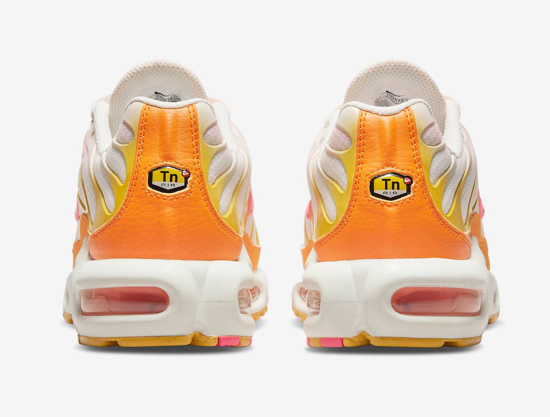 This Nike Air Max Plus features a mixture of mesh, leather, and nubuck materials while shades of Orange, Yellow, and Pink run throughout. Next, 3M reflective hits the tongues, White lands on the midsole while a Golden Yellow rubber outsole finishes the look.