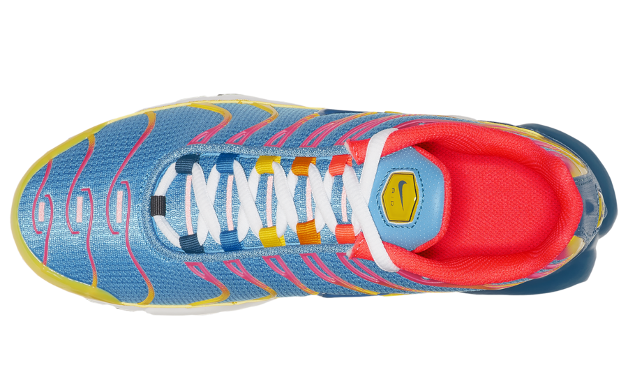 Now that we have been enduring some of the warmer weather, Nike will add more bright and festive colors to their retros. Here we have a new Air Max Plus releasing in kids sizing.