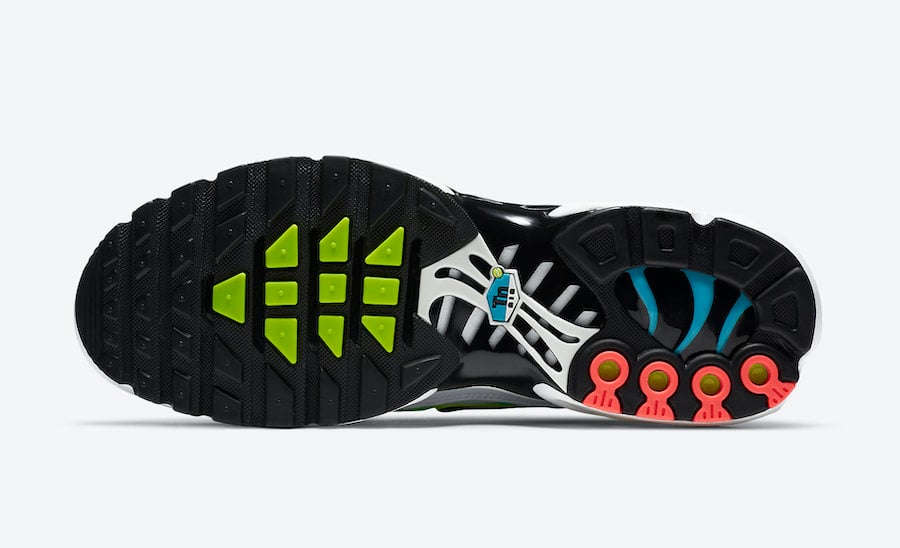 This Nike Air Max Plus comes dressed in a White, Black, Blue Fury, Volt and Flash Crimson color combination. Highlighted with a gradient mesh on the upper while White lands on the plastic overlays. Leather is used across the mudguard and heel while Crimson is applied to the lateral tag. Finishing the look is โWorldwideโ text on the insoles and a globe on the tongue.