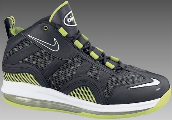 A few colorways have released of the 2011 Nike Air Max Sensation, but one slipping under the radar is fitted in black, white, and bright kiwi. The updated Nike Air Max Sensation, once a shoe worn by Chris Webber on the courts, now has a full air cushion sole. Using a dominate black base, bright kiwi that gives it a pop, and hints of white. Available now at Nike retailers.