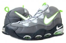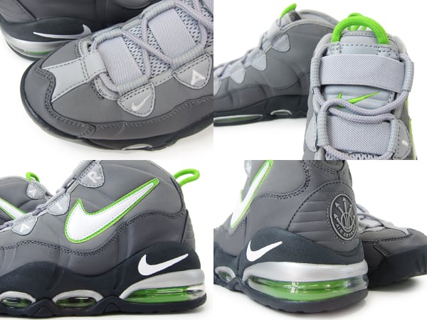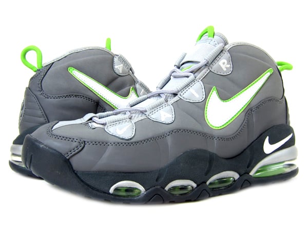 A two toned upper consisting of Grey (possibly 3M on the mudguard) along with a darker shade on the midsole. White and Neon Green make up the rest of the color blocking on this ’90s throwback looking to make another run in the Retro category.