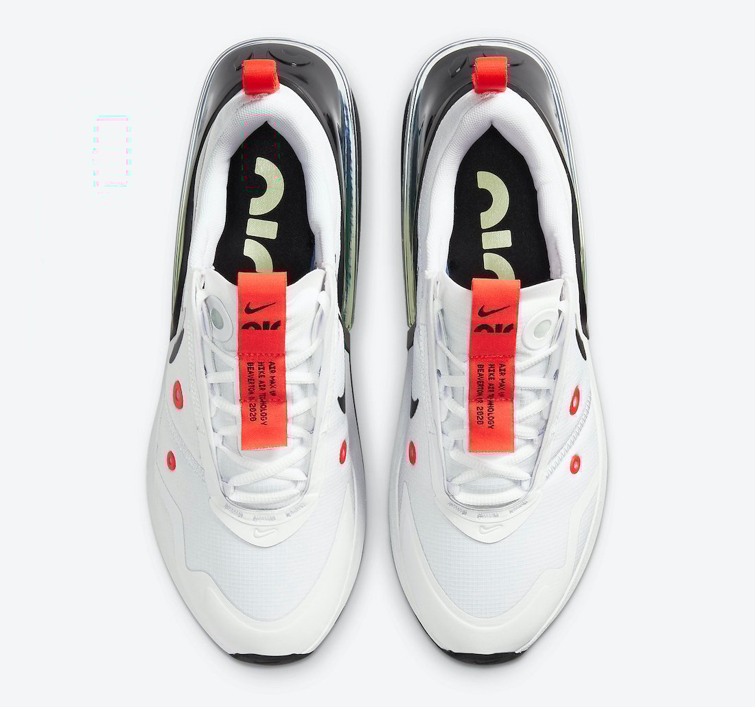 One of the upcoming releases comes dressed in a White, Platinum Tint, Black and Bright Crimson color combination. Highlighted with White on the base along with dual Swoosh logos on the sides. Crimson lands on the pull tabs and other small details, gradient Green to Blue is placed within the Air Max unit while Black lands on the rubber outsole.