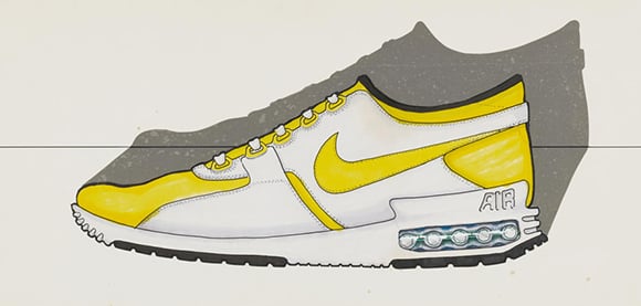 The original sketch that Tinker Hatfield did while trying to come up with what we know as the Air Max 1, was done in white and yellow. Hatfield drew it up in 1985 and as you know they officially released them with a small change, an Ultra Moire midsole. Simple yet clean for the spring and summer, the Air Max Zero comes with a white midsole and select areas on the sides, while the rest of the shoes gets a yellow treatment.