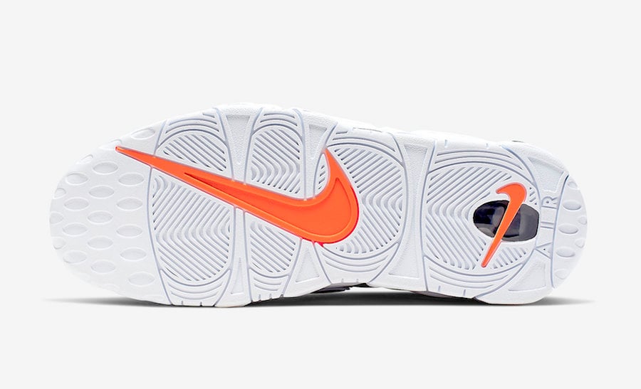This Nike Air More Uptempo comes dressed in a White, Obsidian and Total Orange color combination. Looking closer this pair features three shades of denim across the upper while White lands on the laces, outlines the large AIR and covers the midsole and rubber outsole. Completing the look is Orange that lands on the tongue branding, insole and outsole.