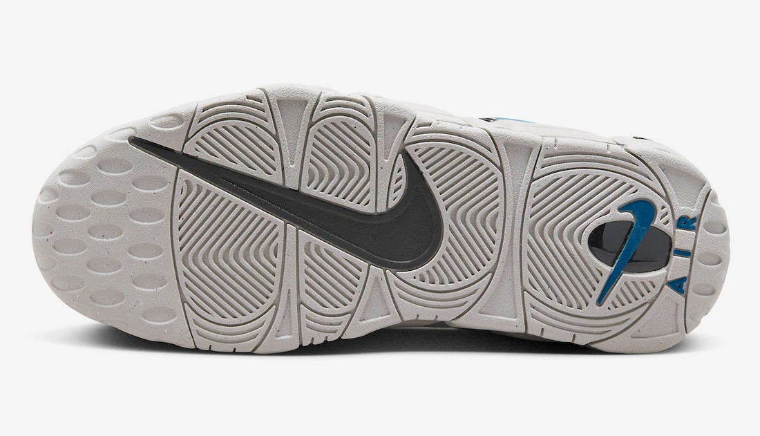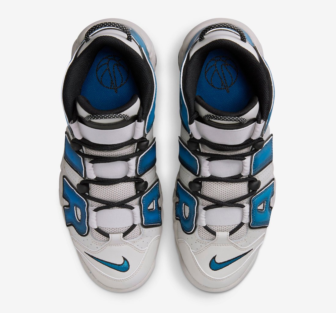 Going over this Nike Air More Uptempo, it features White Bone leather across the upper with traditional perforations and mesh tongues. Next, Industrial Blue fills in the large โAIRโ on the panels that are outlined in Black. More Black adorns the Swoosh logos, laces, and liner. Finishing the look is Nike Basketball branding on the insoles.