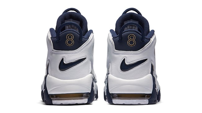 Overall, the 2016 edition of the ‘Olympic’ Nike Air More Uptempo will look like the original release that took place back in 1996 and retro 2012. Made infamous by Scottie Pippen wearing this model during the 1996 Olympics which at the heel shows his number 8. Nike has decided to remove Pippen’s Olympic number for the 2016 release for reasons unknown. Other than that, the large AIR across the sides will come in white while blue hits the panels, tongue and other small areas and finally an orange Swoosh on the tongue.