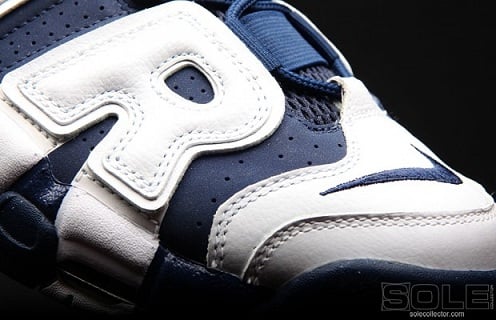 A couple of days ago we brought you a look at the navy/orange/white colorway of the Nike Air More Uptempo, which recently went on sale from different Nike retailers. But today we bring you news of another colorway that is sure to get sneakerheads more excited than the aforementioned one. It seems as though Nike plans to finally retro the Nike Air More Uptempo “Olympic” in the traditional navy/white colorway Scottie Pippen used en route to winning olympic gold. From the pictures here, Nike has chosen to stay true to the original, including even the golden number 8 on the heel. Rumors have it that this retro release will most likely hit certain House of Hoops locations at some point in the future.
