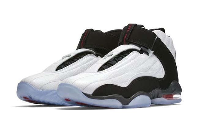 This Nike Air Penny 4 comes dressed in a White, Black and True Red color combination which steers away from the Blue theme we commonly see on the model for his one time team, the Orlando Magic. Constructed with a White leather across the uppers while Black nubuck runs on the overlays and strap. Other details include Red accents and a translucent outsole.