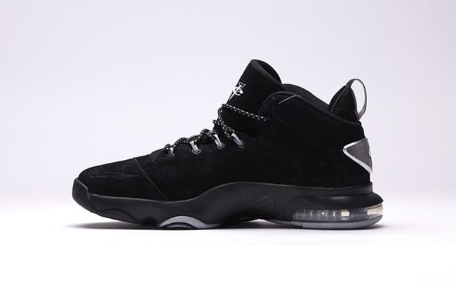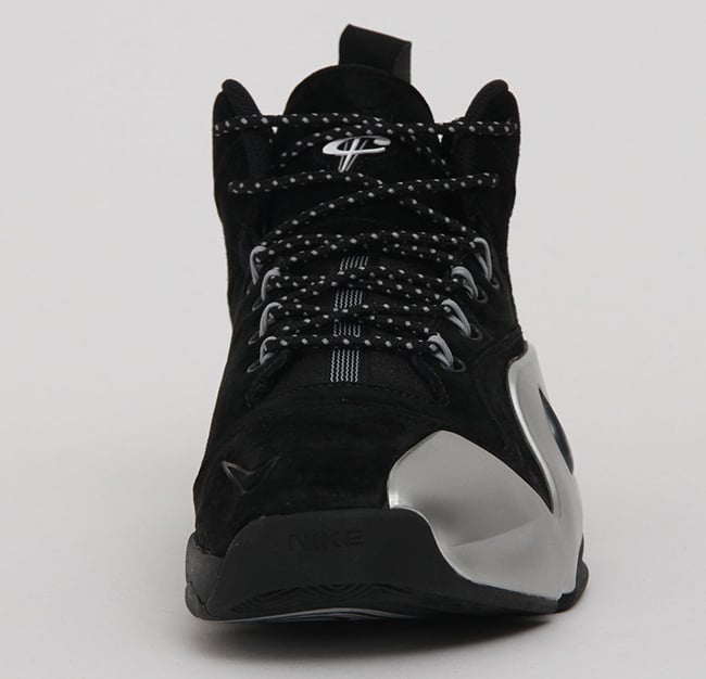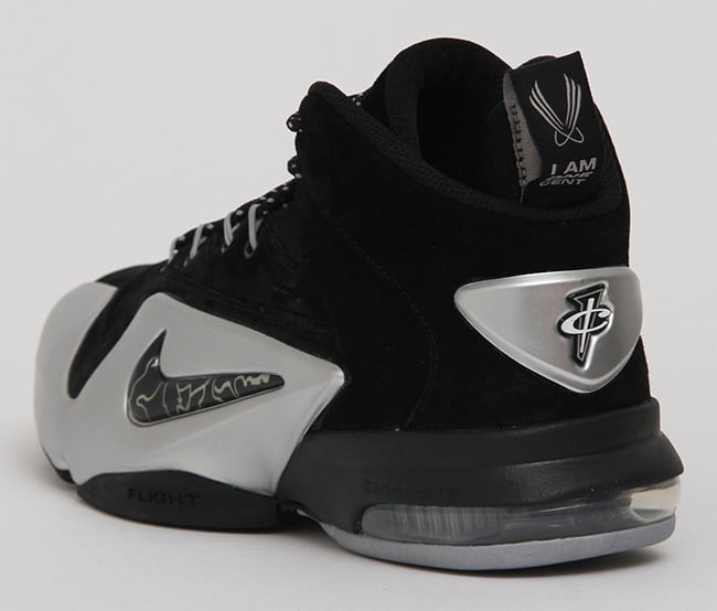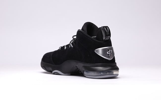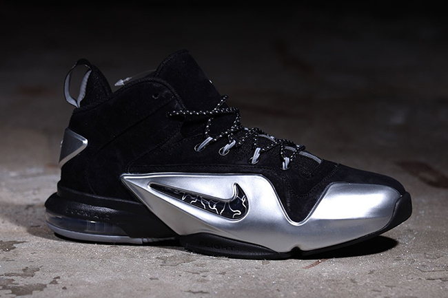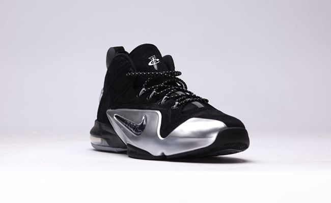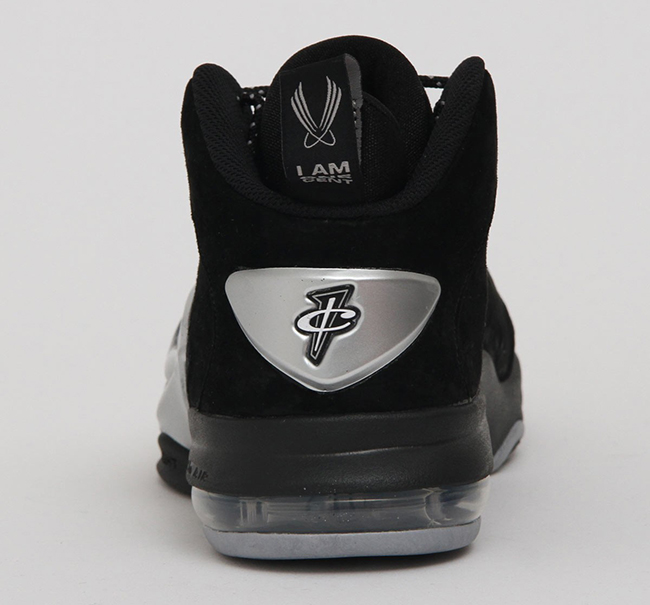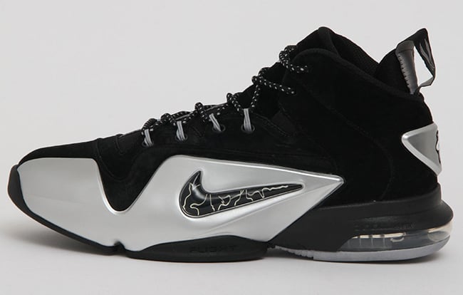 The new Air Penny 6 comes in a simple black and metallic silver color theme. Up top is mostly black used with suede material while the foamposite overlays throughout feature a metallic silver finish. Other highlights include an electric graphic through the swoosh and the 1/2 cent logo at the heel.