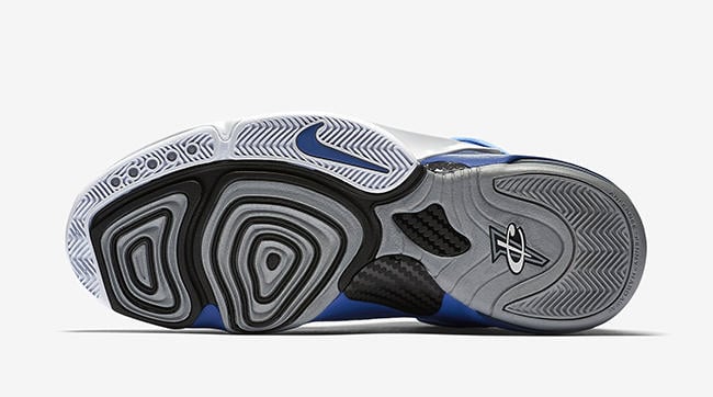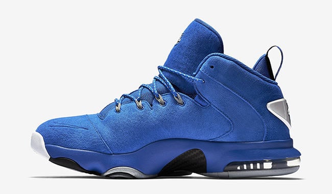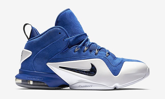 Featuring a game royal, black and white color scheme that can be pointed back to Penny Hardaway’s days with the Orlando Magic and Memphis. Royal blue suede covers most of the uppers, hence the nickname while white lands on the Foamposite material. The last detail is the electrifying jeweled swoosh located on the sides.