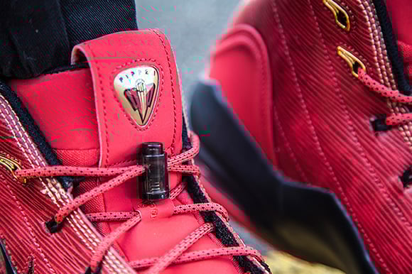 The Chicago Bulls Nike Air Pippen 6 which is also being called ‘Ragging Bulls’ comes with a predominate university red upper that also hits the outsole. Through the midsole is the use of black which is also present on the heel tab. Mixing it up is gold and metallic silver which accents throughout.