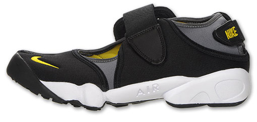 The classic, yet summer favorite of the Nike Air Rift is back in a Black, Tour Yellow and White colorway, resembling the Livestrong collection. While black, grey and white are the main colors used, yellow makes it way for the Nike logo and the inside lining. You will only be able to purchase this pair of Nike Air Rift‘s online at Finish Line.