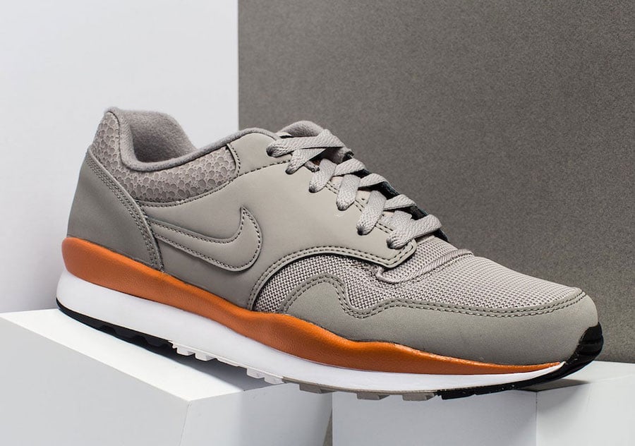 This Nike Air Safari will be dressed in full Grey on the uppers while constructed of mesh, suede, and leather materials. This shoe will sit on an Orange and White midsole that contrasts the uppers and a Black outsole. The highlight of this pair is the Grey Safari print detailing on the heels giving the sneaker its signature Safari look.