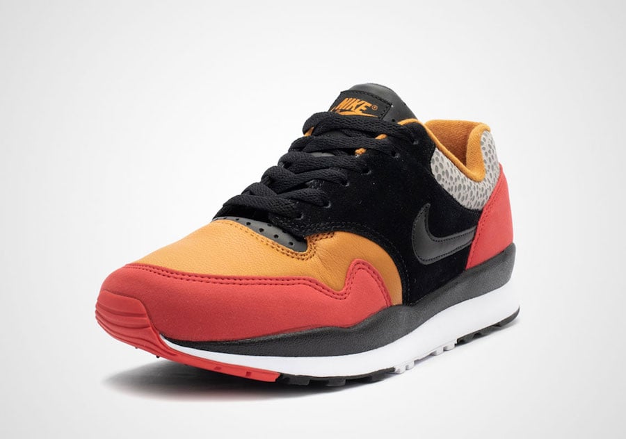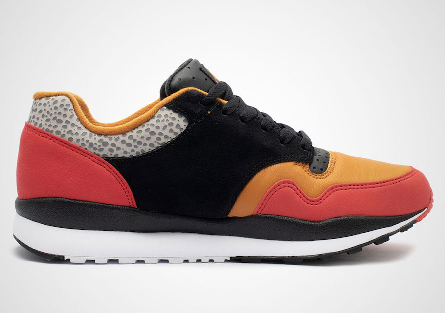 Looking closer this Air Safari comes dressed in a University Red, Black, Monarch and Cobblestone color combination. Highlighted with Tan leather on the toe box, Black suede is applied to the panels while Safari print is moved to the collar. Other details includes Red around the toe and heel and White on the midsole to finish the look.