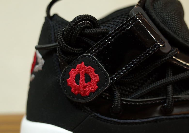 Looking close they feature predominate Black across the uppers while constructed with a mixture of nubuck, mesh and patent leather.ย ย In addition we have Red accents while White is applied to the midsole.ย ย Completing the look is a rubber outsole and the traditional logo on the heel.