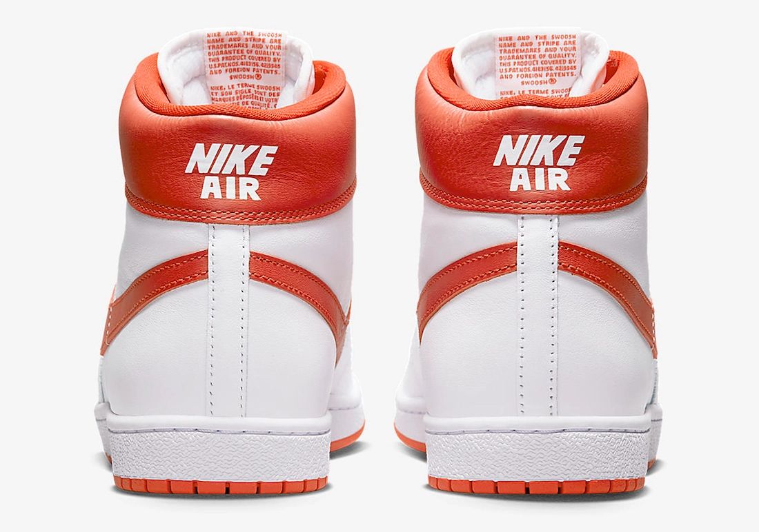 This Nike Air Ship comes dressed in a White and Team Orange color combination. Constructed with White leather on the upper, Orange lands on the Swoosh logos, collar, branding on the tongue labels, and rubber outsole. Other details include White on the tongue, laces, midsole, and โNike Airโ branding on the heels.